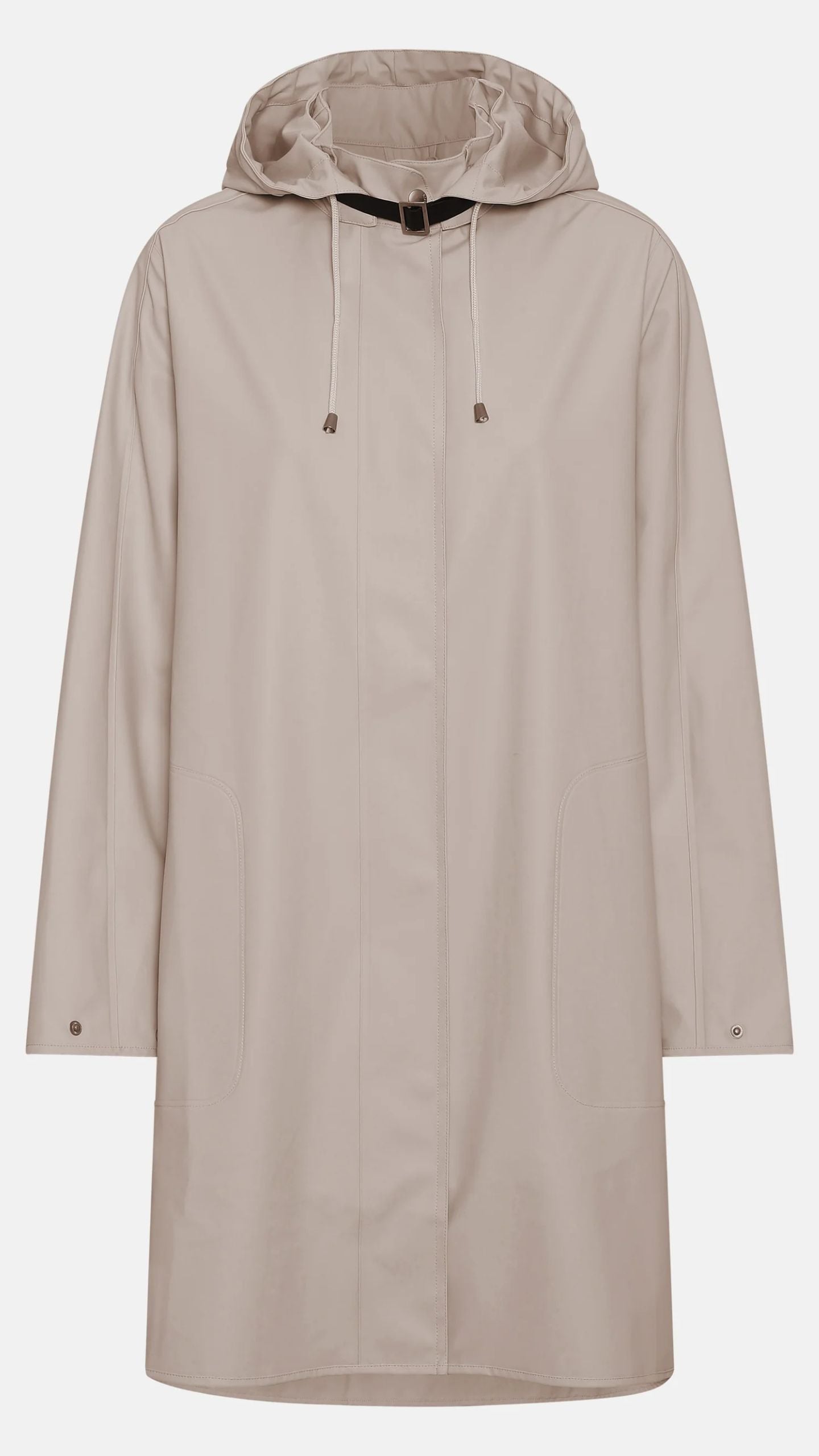 The raincoat is made in a light and subtle waterproof rubberized PU material with a tricot backside, that makes the raincoat extremely comfortable to wear.