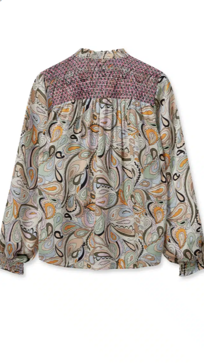 This trendy blouse has an eye-catching and colourful print that makes it a perfect statement piece.