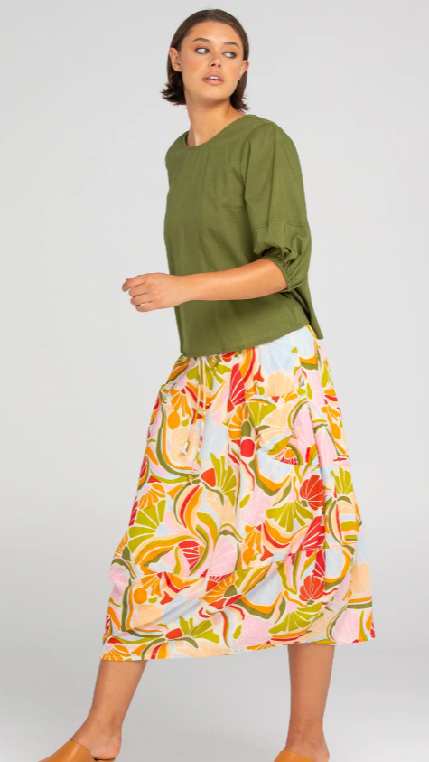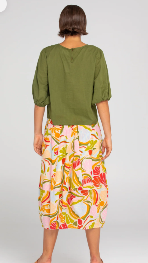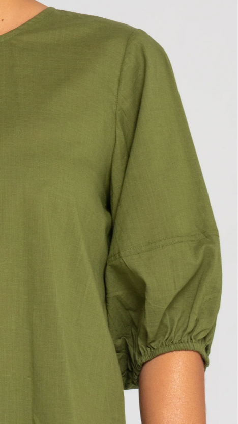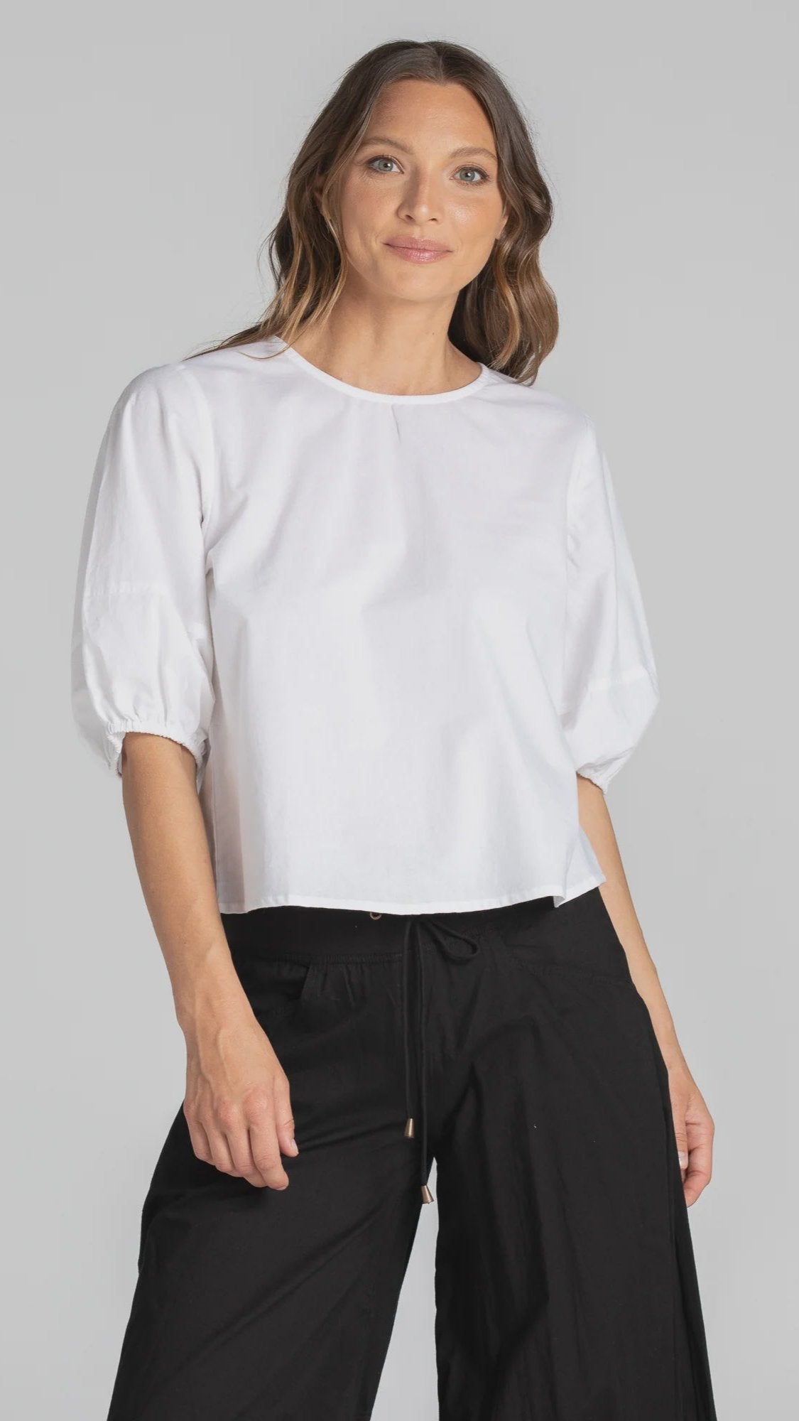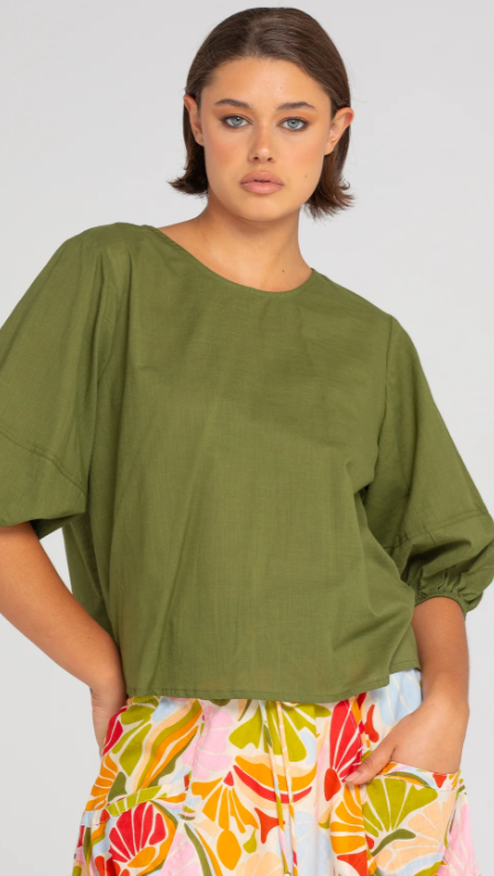 The Boom Shankar Ava Top is your new essential! This cropped length top in 100% cotton is comfortable and easy-to-wear throughout the seasons. The puff sleeve detail adds a touch of fun to this classic design.