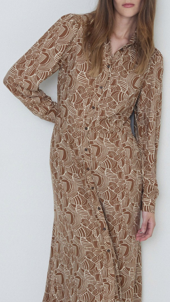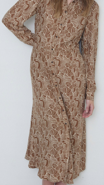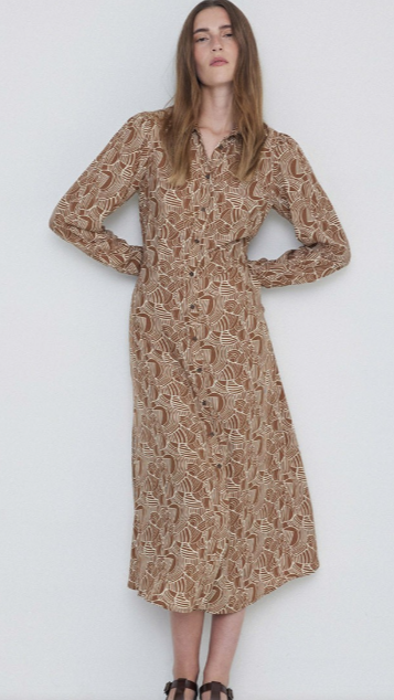 A gorgeous print midi dress in a flowy fabric with long sleeves, gathered shoulders and long sleeves.
