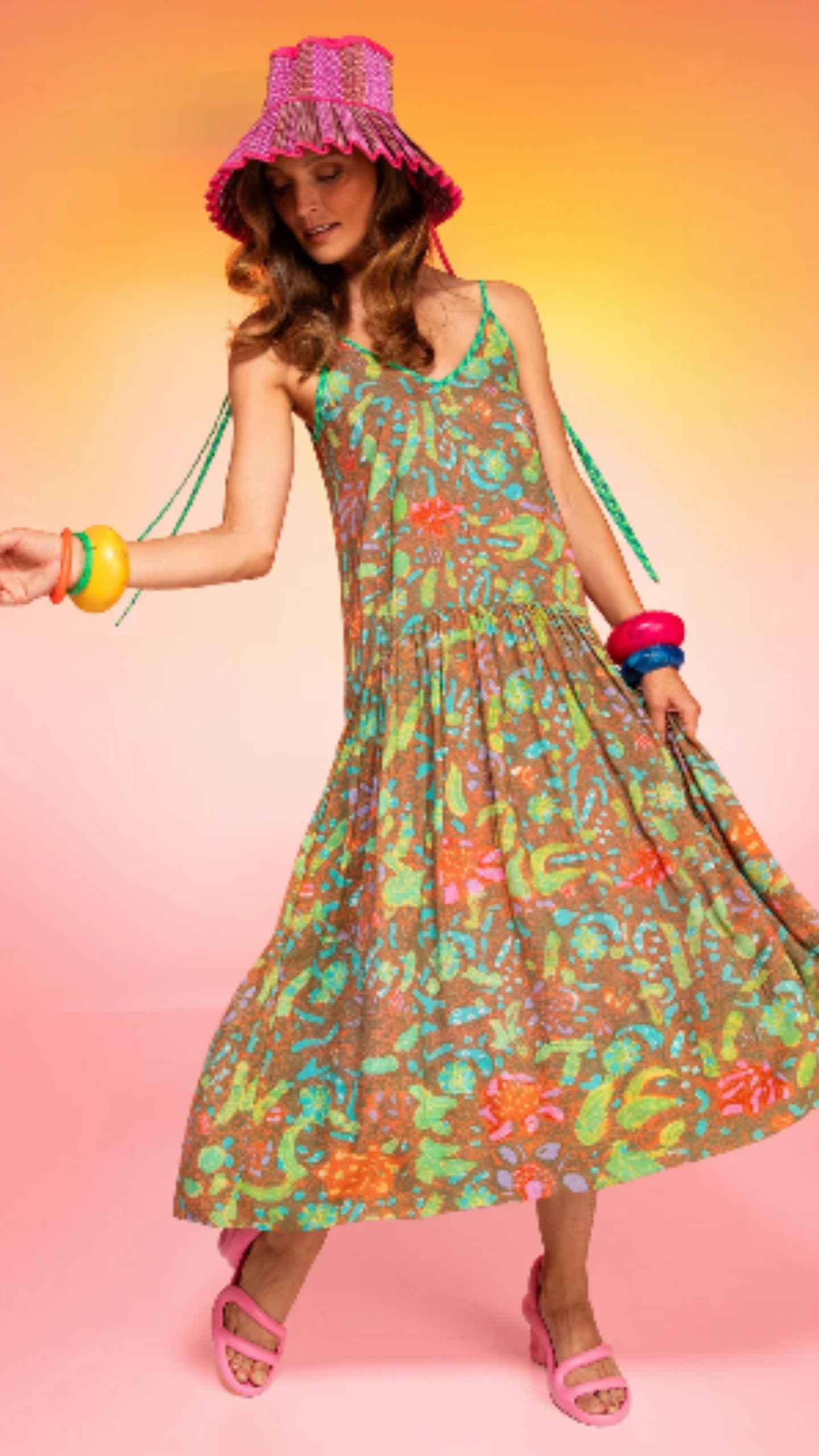 The Boom Shankar Rimi Dress is a stunning strappy maxi in our zesty Euro summer inspired Rimini print. Featuring a contrast green gingham trim and bow-tie straps.