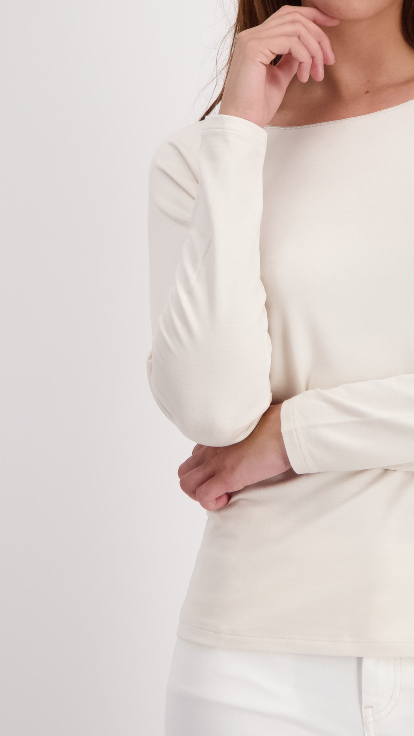 Simply styled long sleeve Tee by Monari, with a round overlocked neck edge.