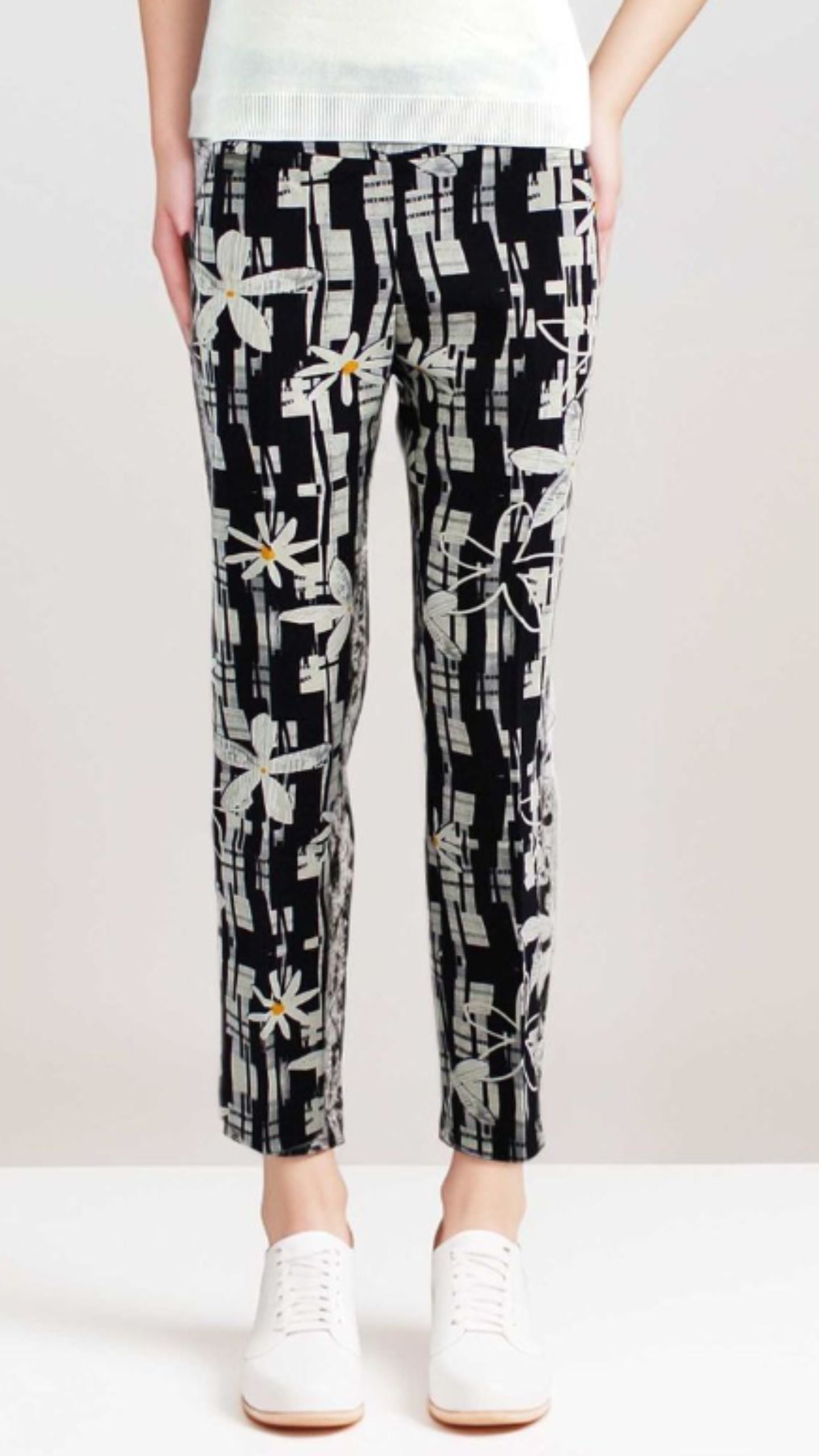 Look stylish and comfortable in our graphic daisy printed tulip hem pants.