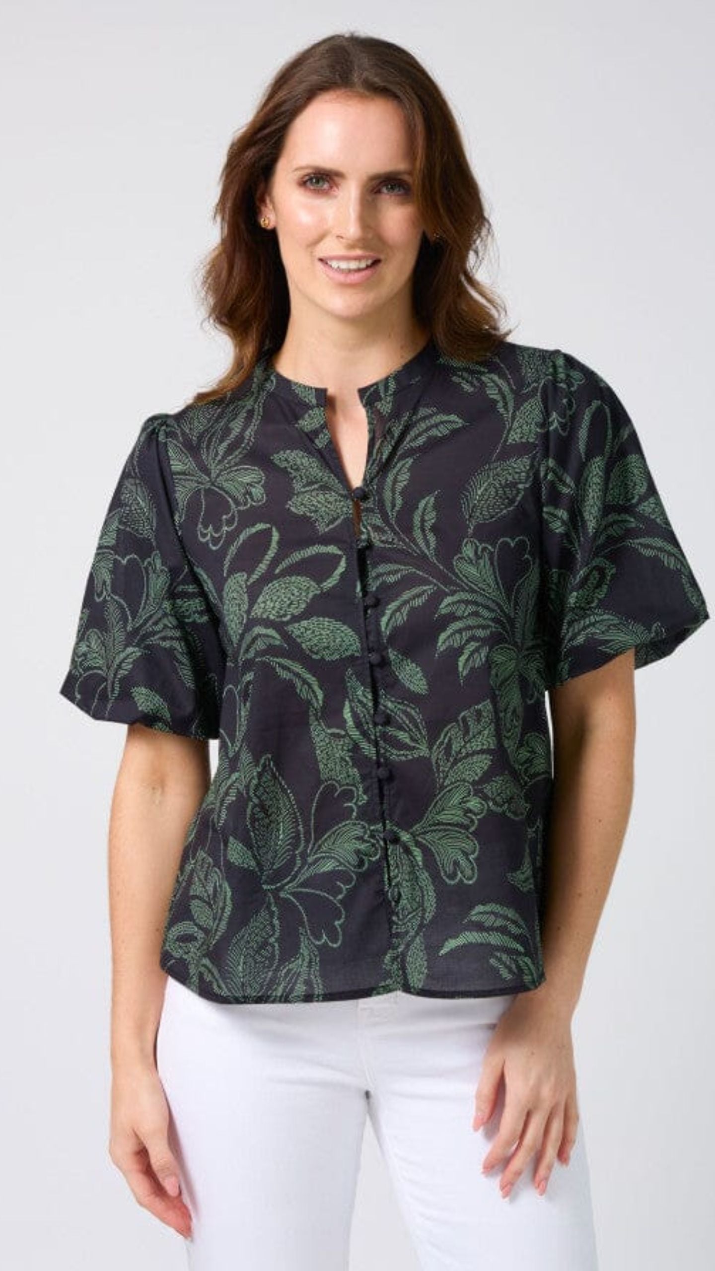 - The Tamara Blouse in an Evening in Ibiza" print from Steaal + Gemma