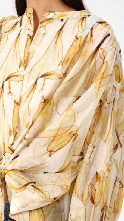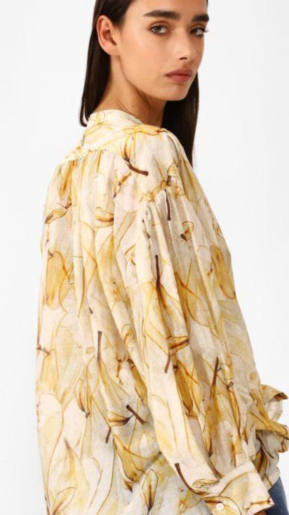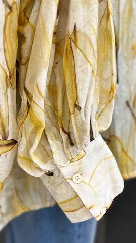 This gorgeous soft silk voile oversized blouse features a gathered sleeve onto a tailored cuff.