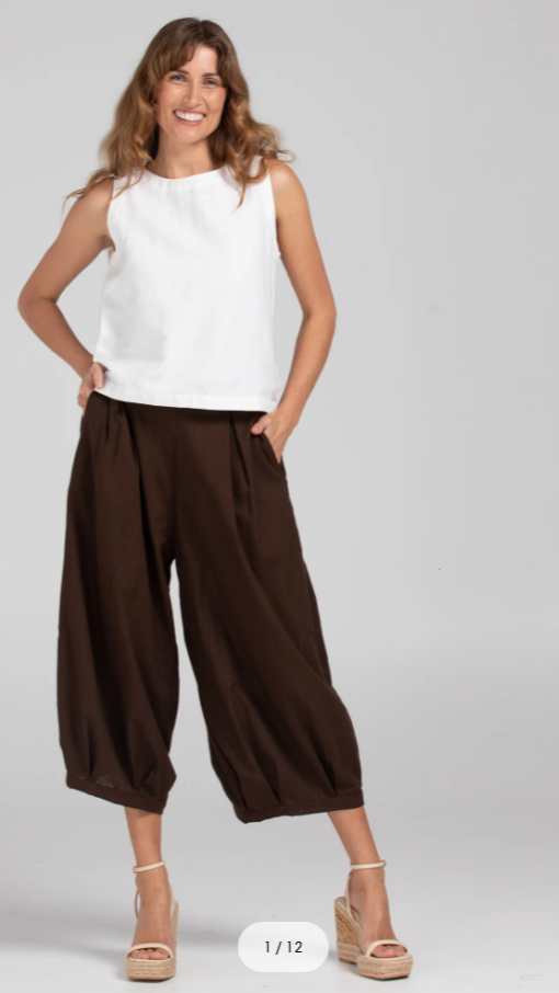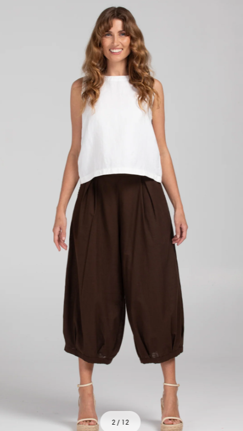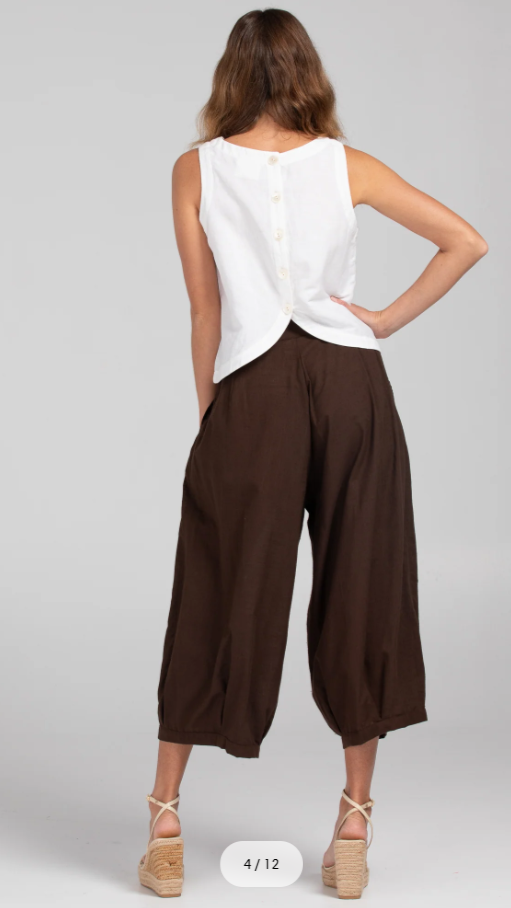 The Boom Shankar Zetta Pant is a 100% cotton, 3/4 length pant in a wide leg design.